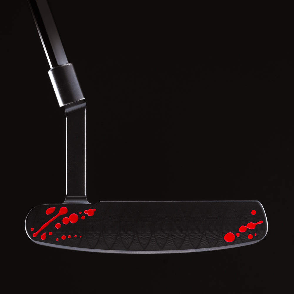 If looks could kill, this putter would amass dozens every time you set foot on the golf course! The limited edition Jason Skull Handsome One features splattered blood across the face and sole with a stunning Black Satin PVD finish that will give anyone in your foursome the creeps. Complete with SWAG in cavity, a blood red flange line alignment aid, Black PVD Stepless KBS shaft, and matching black and red Iomic Swag branded grip.