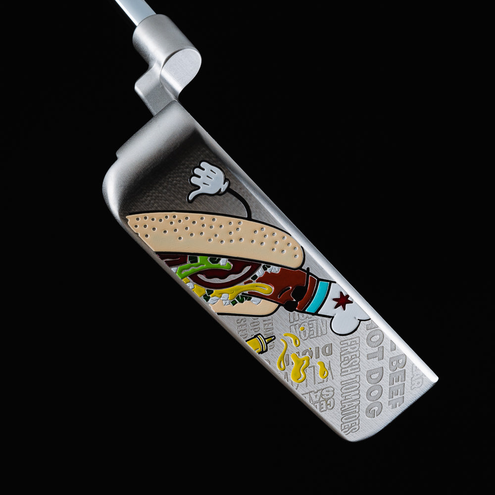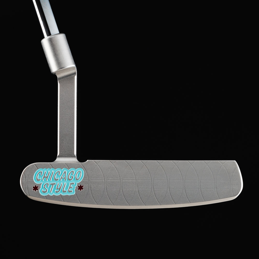 This limited-edition Chicago Style Handsome One lefty putter comes paired with a matching made-in-the-USA headcover with magnet closures and the softest available furs on the market to ensure the protection of your flat stick.