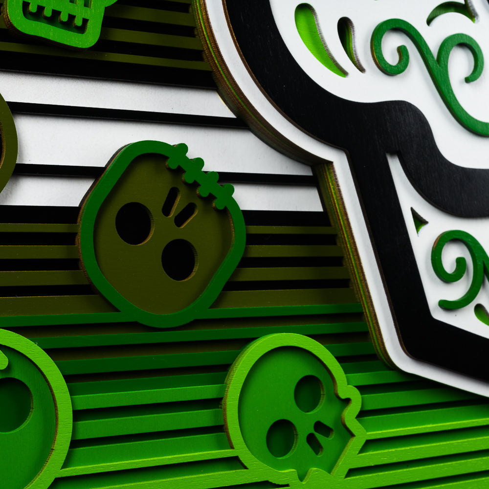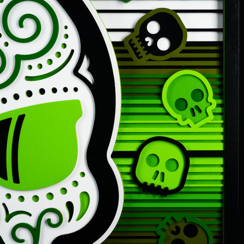 Green Serape Sugar Skull Wood Wall Art