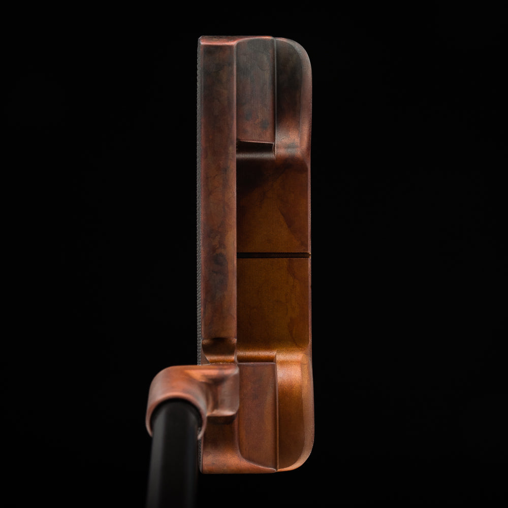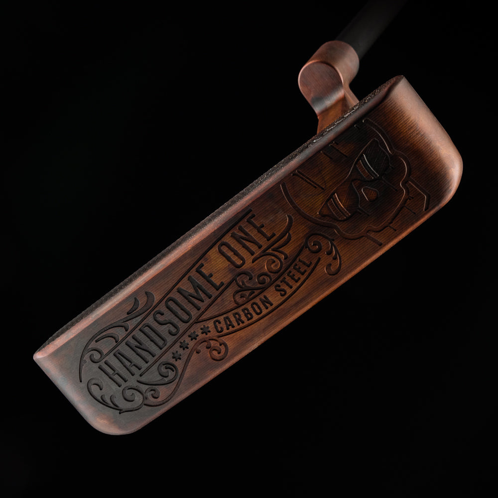 Our latest iteration of the Handsome One is now available in a brand new finish that appears to be aged for decades. We have taken the time to age these heads in such a way that makes each and every piece to have a beautiful and unique finish all its own. These putters are made to rust! Please take note, EVERY putter has a unique finish, we have a representative photo of the variation of finish and there is no way to pick any particular finish.