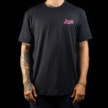 Black heather print, jumbled logo design, fabric wayyy softer than your hands around the green—get a t-shirt that could teach your swing what it looks like to be smooth as butter.