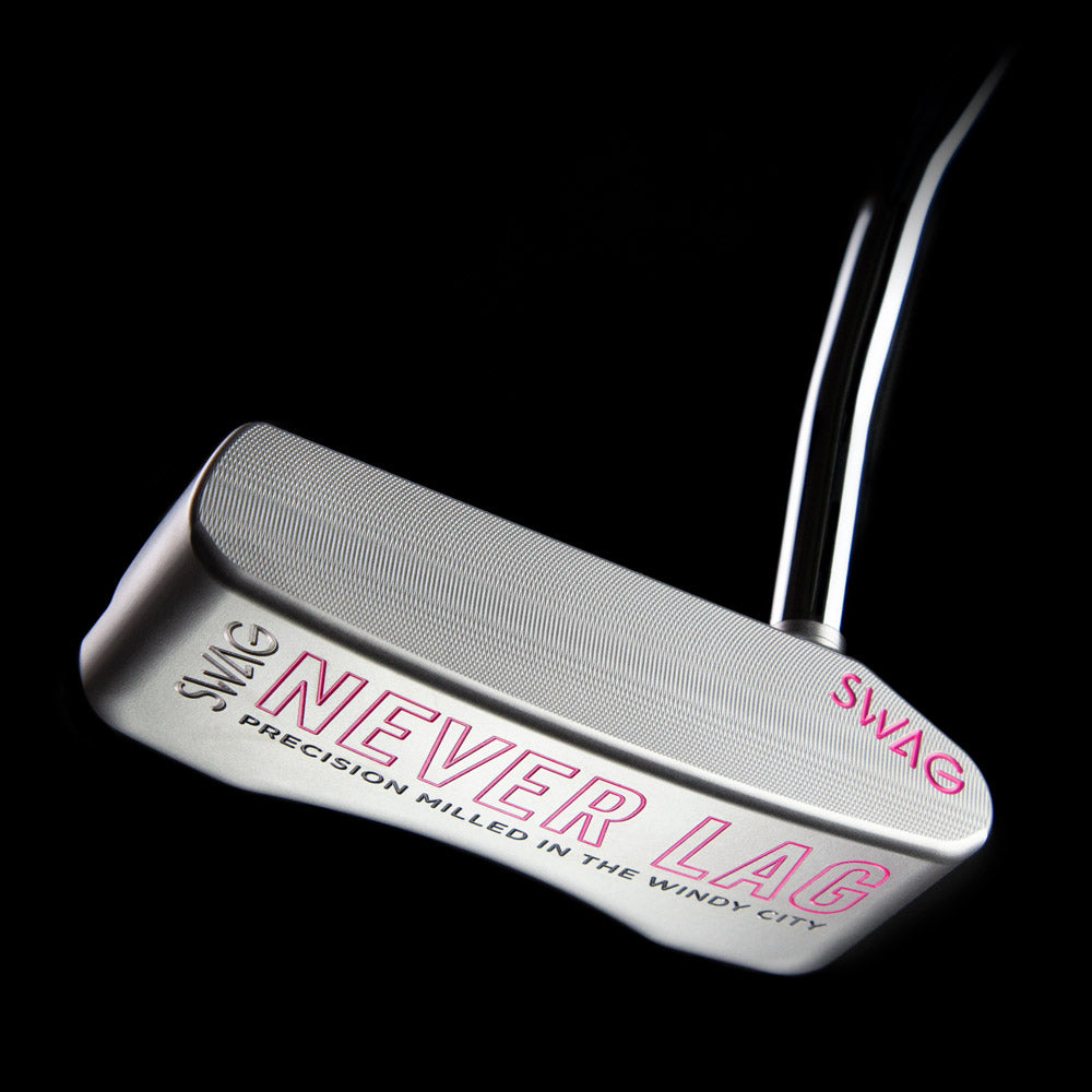 The Savage Too, makes its second appearance in a very cool limited run with our unforgettable slogan NEVER LAG, engraved on the sole with bright pink paint fill! The Savage line was started over 9 months ago and since then dozens of tweaks have been made to the alignment, weight, face thickness, etc… all in the hopes of creating a perfect compact mallet.