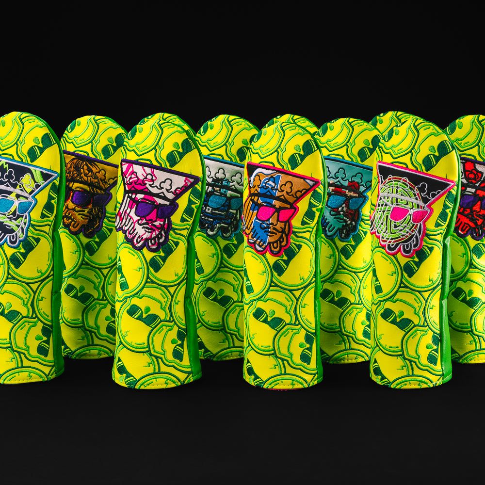 There's a new king in town! Introducing the Recycled King which features an embroidered King patch made from "recycled" past (and upcoming?) covers layered upon a neon falling skulls cover. Quantities are extremely limited, and each cover is one of a kind.
